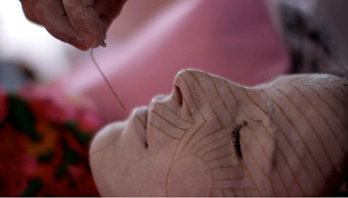 E reja qëndron e shtrirë, ndërsa gruaja e moshuar përmbi ia pikturon fytyrën. Në fillim vjen e bardha, që e shndërron atë si një copë të madhe porcelani. Pastaj vjen e arta. Rrathë që simbolizojnë ciklet e jetës dhe vija që janë udhët të cilat do të përshkojë. Pikat e kuqe që janë shenjë e pjellorisë dhe piklat blu, për ta ruajtur nga syri i ligë. Aziza Shefitagiq, kosovarja me origjinë boshnjake ka mbetur ndër të fundmit zonja që di të përgatitë Nusen Ilire. Ajo i ka kaluar të shtatëdhjetat e megjithatë me zell e bën gati vajzën-nuse për edicionin e dhjetë të Etnofestit, zhvilluar në javën e fundit të shtatorit, në Kukaj të Kosovës.