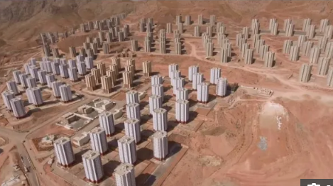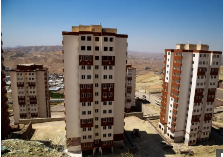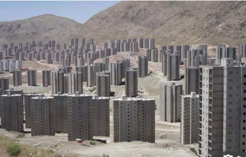 Me një pamje apokaliptike, projekti i strehimit Mehr është tashmë një xhungël e braktisur betoni, e lënë ta kalbet në shkretëtirën e zhveshur.