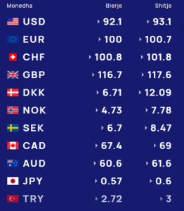 Euro sot blihet me 100 lekë, ndërsa në shitje me 100.7 lekë.