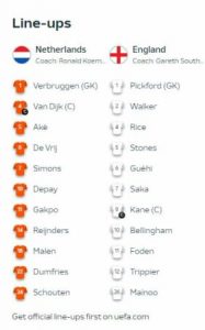 Holandë-Angli është supersfida tjetër gjysmëfinale e Europianit. Pak më parë janë publikuar formacionet, për ndeshjen që do luhet në Dortmund.