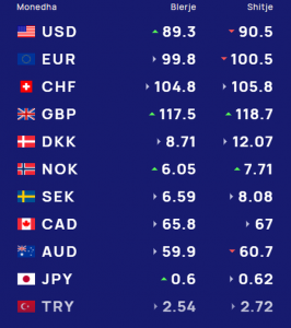Euro sot blihet me 99.8 lekë, ndërsa në shitje me 100.5 lekë.