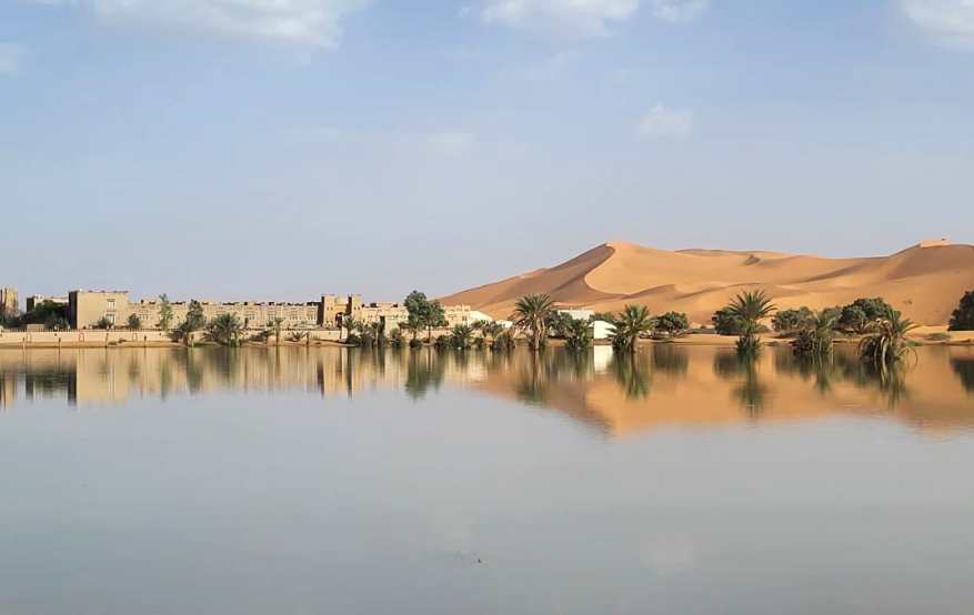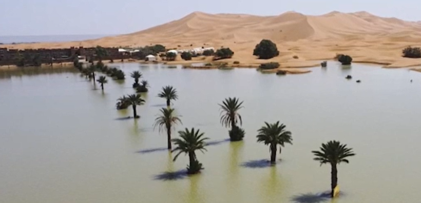 Disa nga imazhet më dramatike janë nga qyteti i shkretëtirës Merzouga, ku përmbytja e rrallë gdhendi liqene të rinj në dunat e rërës.