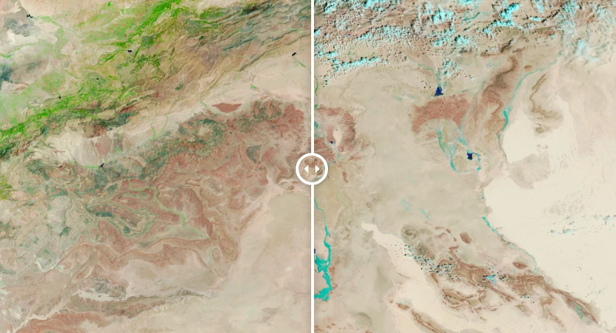 Imazhet befasuese nga shkretëtira e Saharasë tregojnë liqene të mëdhenj të gdhendur në duna rëre që rrotullohen pasi një nga vendet më të thata në botë u godit me përmbytjet e para në dekada.