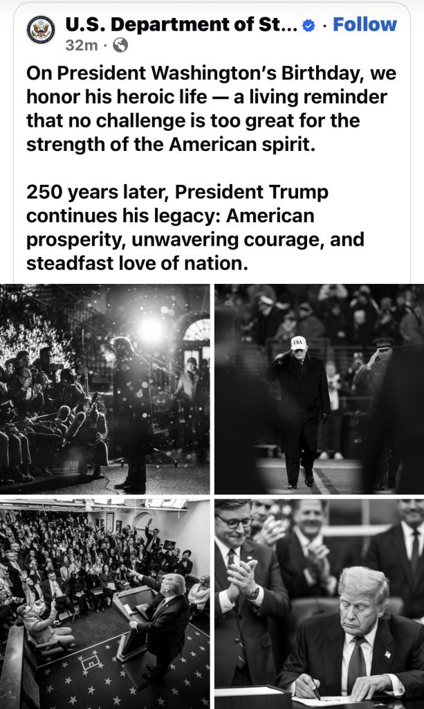 Në të njëjtin kontekst, Departamenti i Shtetit vë në dukje se Presidenti Donald Trump vazhdon trashëgiminë e tij duke mbështetur mirëqenien amerikane, guximin dhe dashurinë për kombin. Ky repostim nënvizon lidhjen midis historisë dhe udhëheqësve të sotëm, duke frymëzuar respekt dhe krenari për vlerat amerikane.