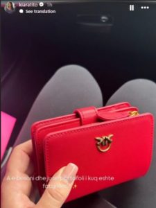 Kiara Tito përveç modelimit njihet edhe për veshjen dhe kombinimet unike qe janë gjithmonë trendi me kohën. Kiara, ndau një fotografi me një portofol të kuq duke thënë se është fatsjellës.