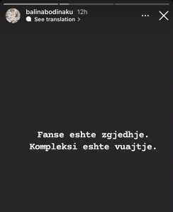 Por nga ana e Balinës nuk mungoi një koment. Nëpërmjet një video në profilin e saj në Instagram, Balina shprehet: