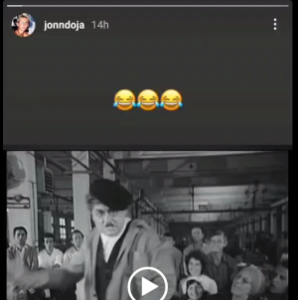 Në lidhje me këtë deklaratë që trazoi ujërat, ka reaguar së fundmi Joni në mënyrë indirekt, por të kuptueshme. Ai ka postuar në Instagram-in e tij një fragment nga filmi shqiptar “Çifti i lumtur” ku thuhet: Unë nuk di se çfarë i thonë kësaj.”