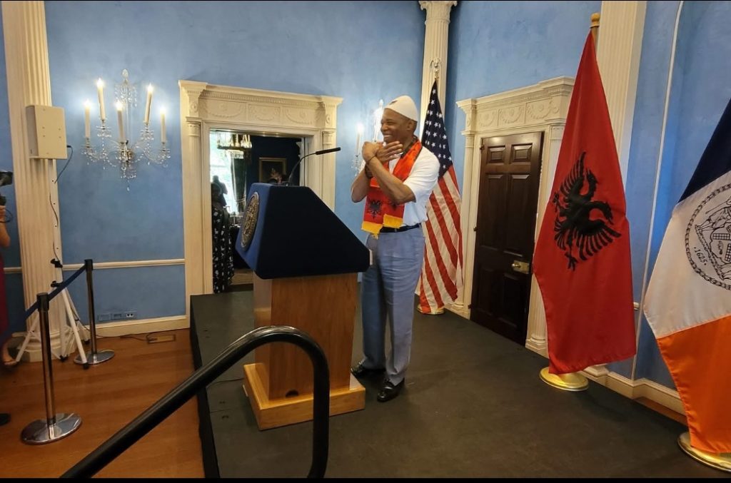 Para nisjes së paradës, Kryetari i Bashkisë së New York-ut, Eric Adams, organizoi një pritje zyrtare në banesën e tij, (Gracie Mansion Conservancy ne Manhattan) ku priti përfaqësues të komunitetit shqiptar, aktivistë, artistë dhe liderë lokalë.