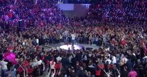 “Kjo është energjia e bukur e Tiranës, kjo është dashuria e madhe e qytetit tonë, e kryeqytetit të gjithë shqiptarëve, që është gati për fitore, për ta çuar përpara me Tiranën dhe me Partinë Socialiste të Shqipërisë. Faleminderit nga zemra që e keni stërmbushur këtë Park Olimpik, faleminderit nga zemra atyre që në pamundësi për të qenë brenda janë jashtë dhe po na ndjekin nga një ekran, faleminderit nga zemra atyre që na kanë ndjekur nga shtëpia, faleminderit nga zemra atyre që na kanë dhënë dashuri, që na kanë dhënë mirësi, kurajo në këtë fushatë kaq të bukur! Në këtë fushatë ku Edi Rama dhe Partia Socialiste vendosën që të mbjellin pemë aty ku mbillej përçarje, vendosën të bashkonin njerëzit, aty ku fushata i ndante, vendosën që ta çojnë Tiranën dhe Shqipërinë përpara, vetëm përpara. Në 2019 kishte shumë njerëz që thanë: Ky është një mandat i lehtë. Nuk pati një garë të vërtetë dhe në 2019, edhe ne menduam që ishte një betejë e lehtë. Nuk e mendonim kurrë që do të vinte një tërmet katastrofik, nuk e mendonim kurrë që do vinte një pandemi që i ndodh botës një herë në 100 vjet, por gjithashtu nuk e mendonim kurrë që me Edin dhe Partinë Socialiste do ngriheshim më të fortë e më të bashkuar se kurrë”, tha Veliaj.