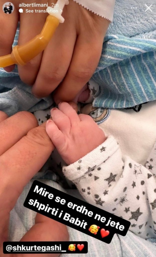 Në imazhin e publikuar shfaqet dora e këngëtares, Albertit dhe djalit të tyre të dytë të porsalindur.
