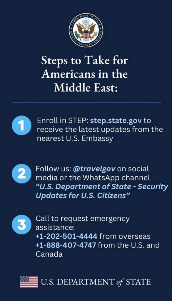 United States Department of State ka lëshuar një paralajmërim të fortë sigurie për qytetarët amerikanë që ndodhen në Lindjen e Mesme, duke u kërkuar atyre të largohen menjëherë përmes linjave ajrore komerciale për shkak të “rreziqeve serioze të sigurisë”.