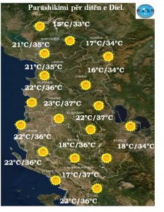 Era parashikohet të jetë nga veriperëndimi-jugperëndimi me shpejtësi mesatare deri në 7m/sek, e cila hera-herës përgjatë vijës bregdetare dhe zonave luginore fiton shpejtësi deri në 10m/sek. Valëzimi në dete pritet të jetë i forcës 2-3 ballë./lexo.al